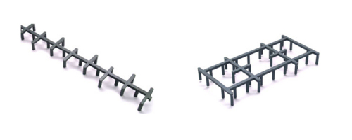 Ferralla elaborada en taller industrial con acero en barras corrugadas, UNE-EN 10080 B 500 S, de varios diámetros. |