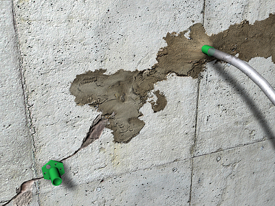 Inyección en fisura con lechada fluida de dos componentes a base de resina epoxi, MasterInject 1360 "Master Builders Solutions", con endurecedor amínico, sin disolventes, (rendimiento: 0,5 kg/m), aplicada mediante equipo de inyección a baja presión, para reparación estructural en elemento de hormigón. El precio no incluye la limpieza del interior de la fisura ni la colocación de los inyectores. |